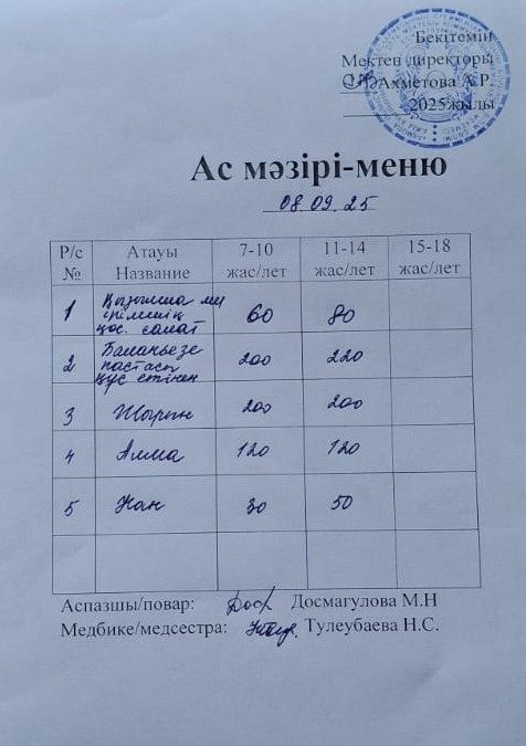 Ас мәзірі 08.09.2025