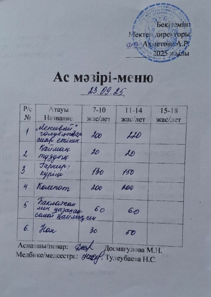 Ас мәзірі 23.09.2025